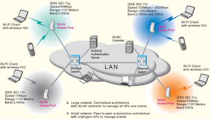 大部分wlan都是基于IEEE 802.11实现,这种基于802.11的无线局域网技术称为WiFi。